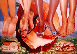 또 다시 Jeff Koons의 작품(오른쪽). 어느 잡지 광고에 실린 사진(왼쪽)을 이용하여 만든 작품이라고 함. 끊임없이 이어지는 소송을 통해 무언가 터득한 바가 있었던 것일까?